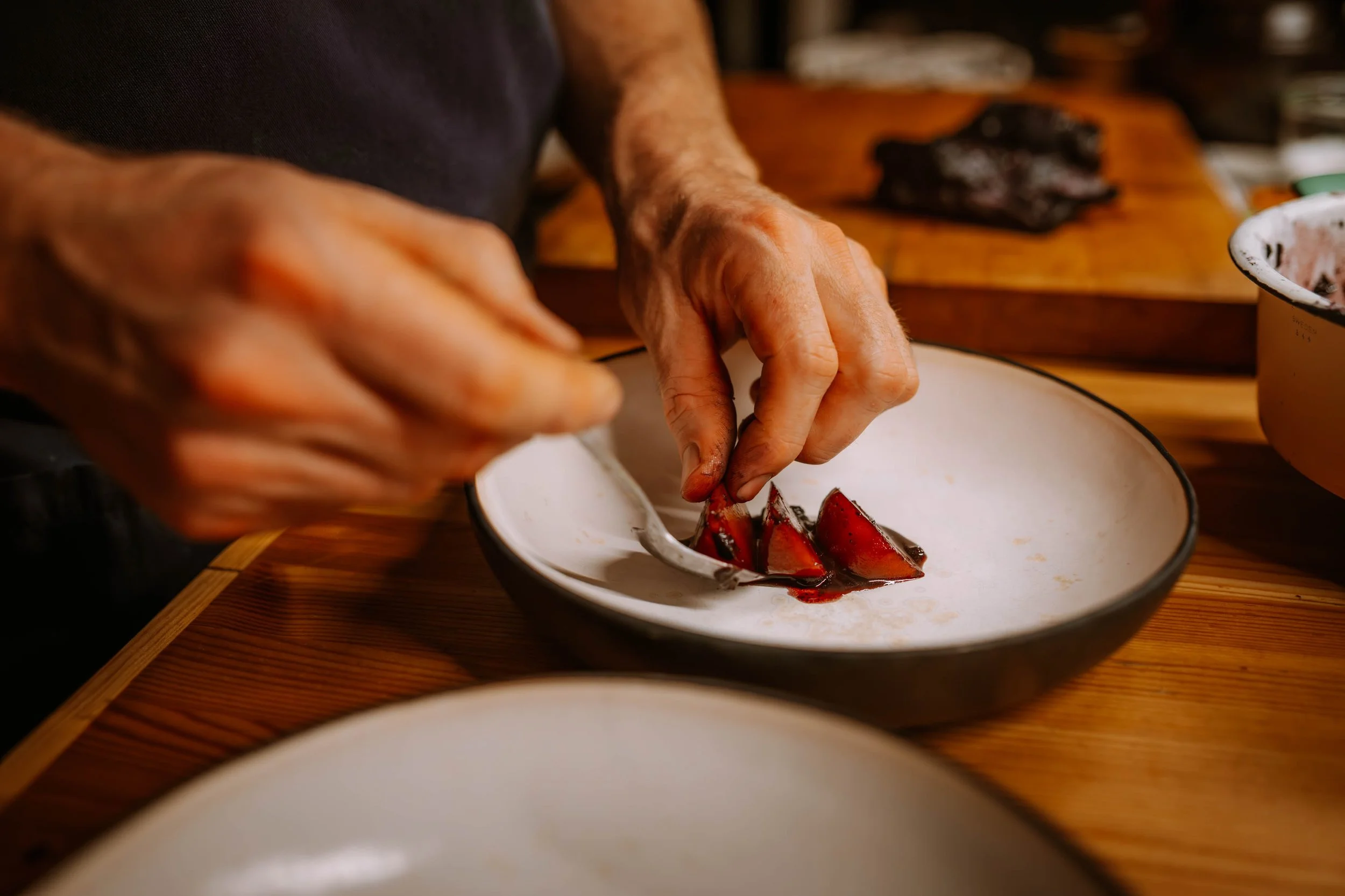 Våra kvällsmenyer är komponerade efter säsong och vi erbjuder förstås utvalda viner och andra passande drycker till.