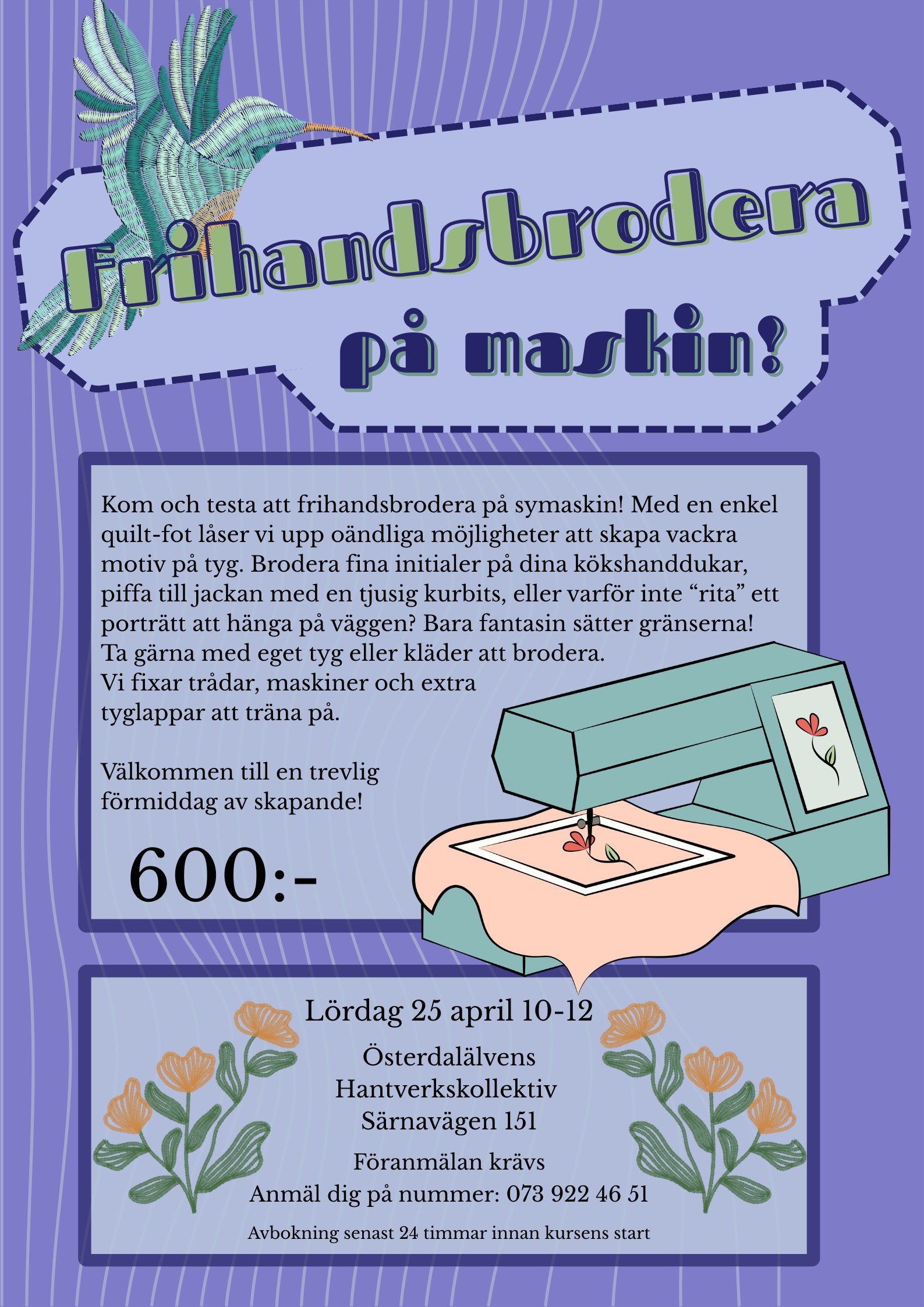 Ta gärna med eget tyg eller kläder att brodera - vi fixar trådar, maskiner och extra tyglappar att öva på.